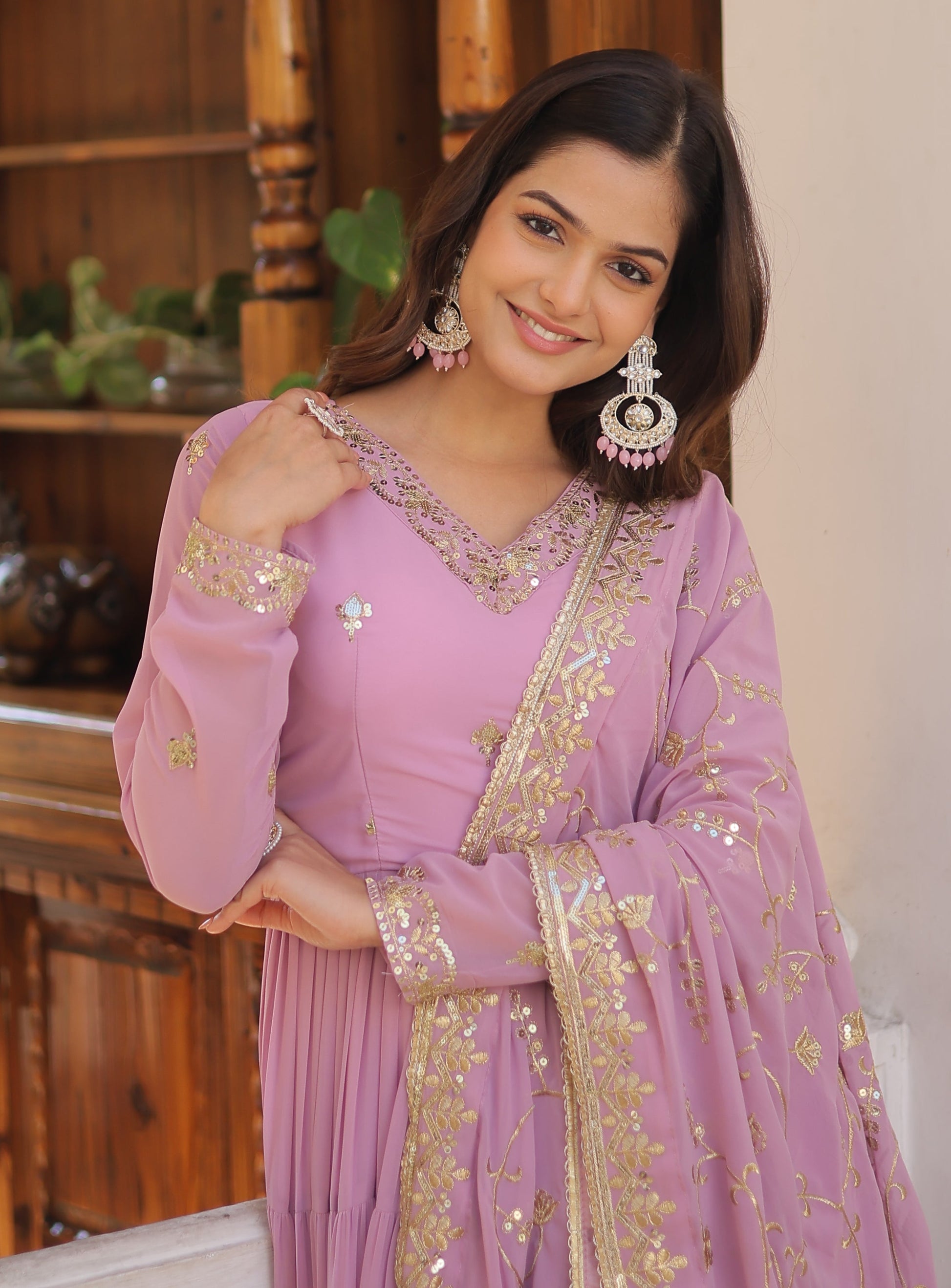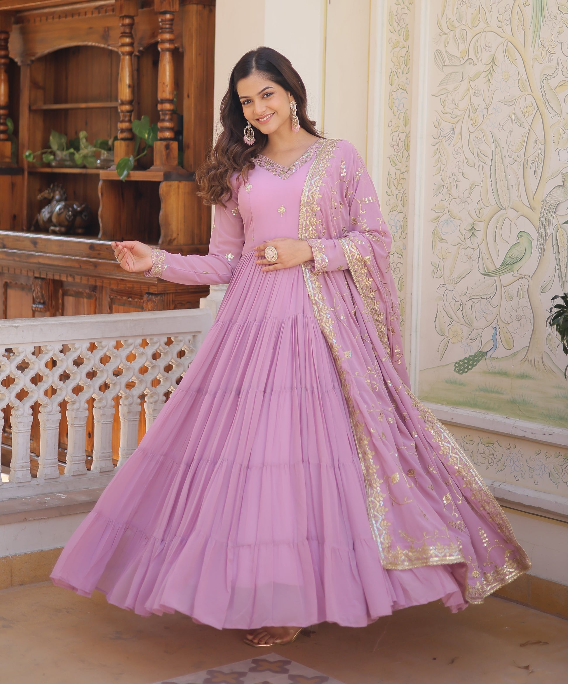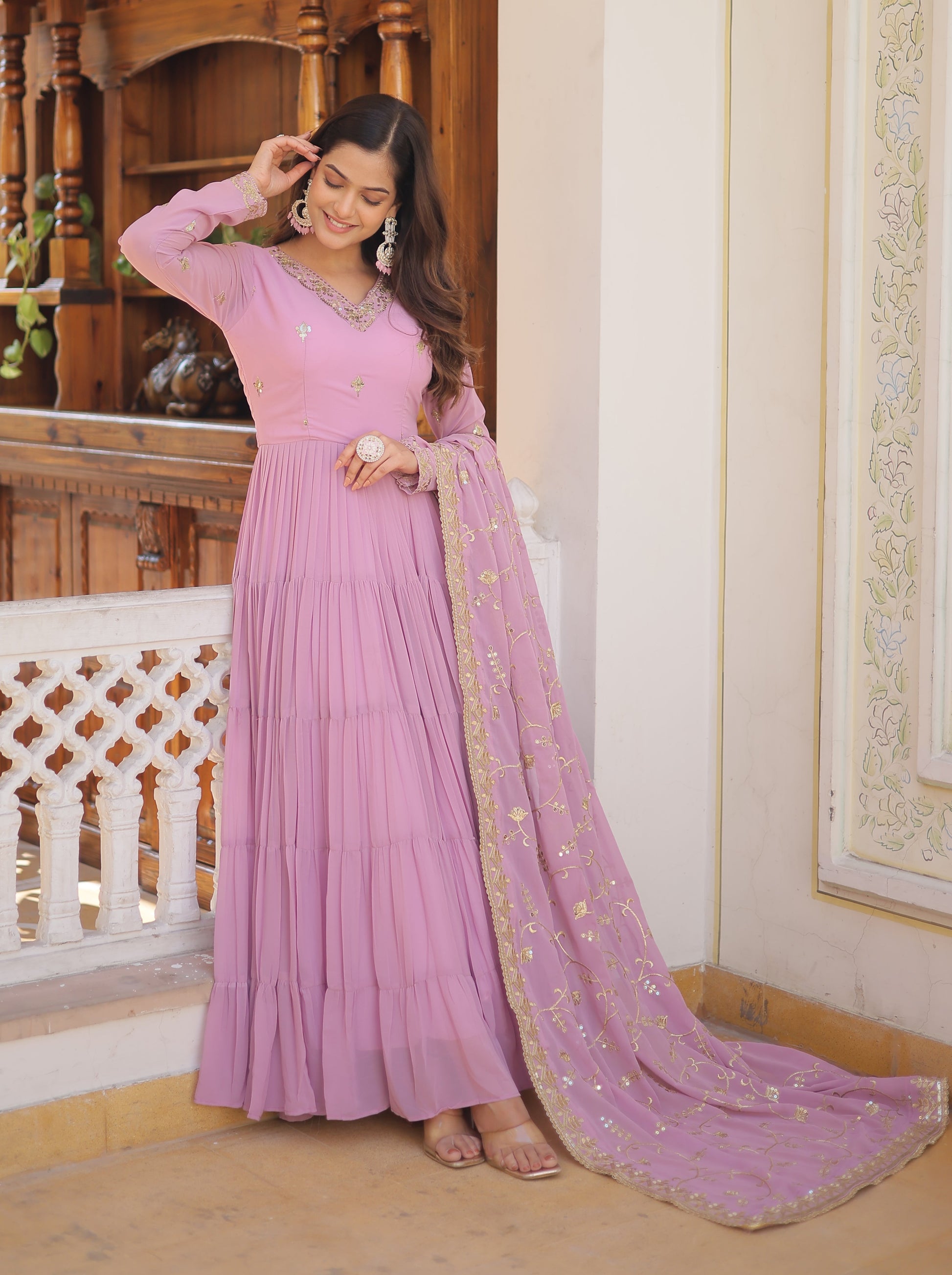 Product Name -Designer Georgette Purple Kurta Set