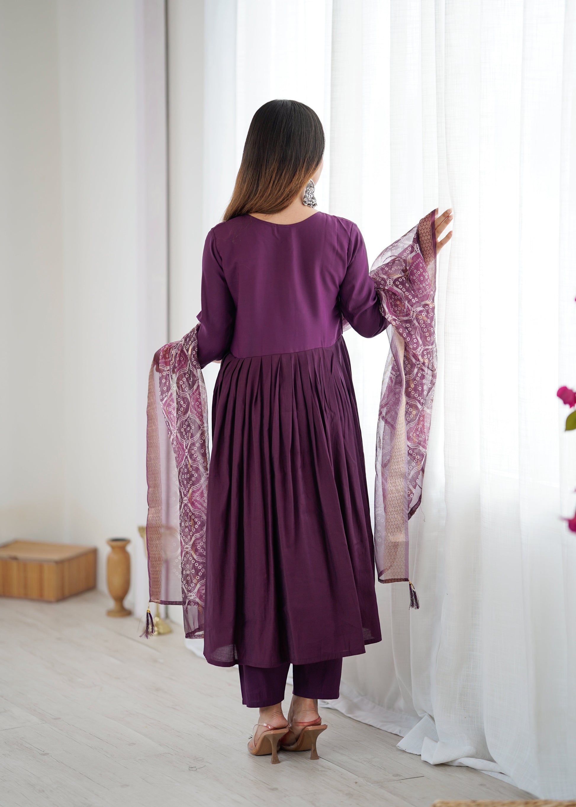 Product Name - Elegant Wine Kurta Set with Dupatta and Pants