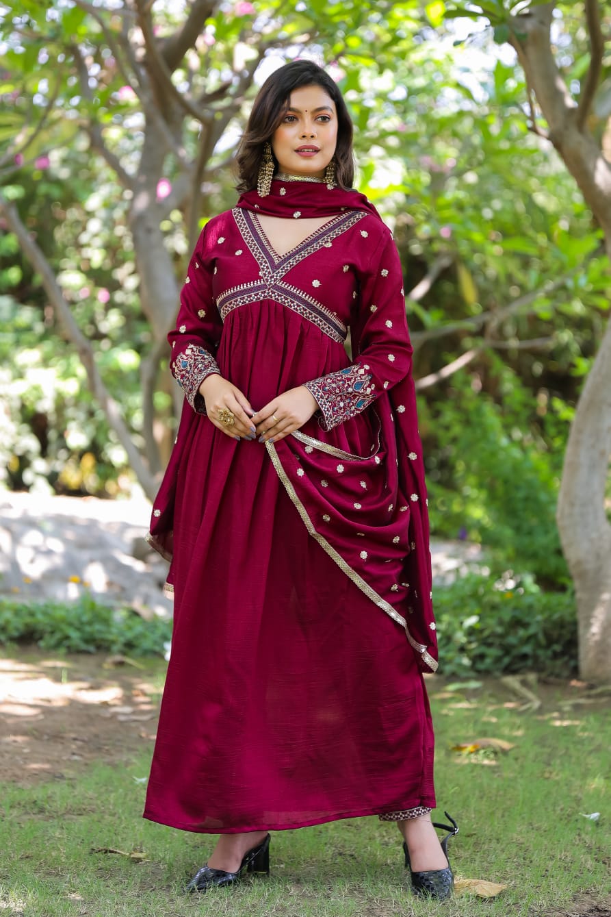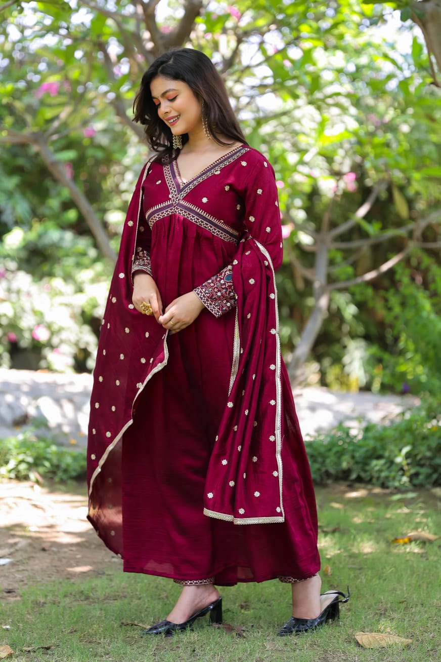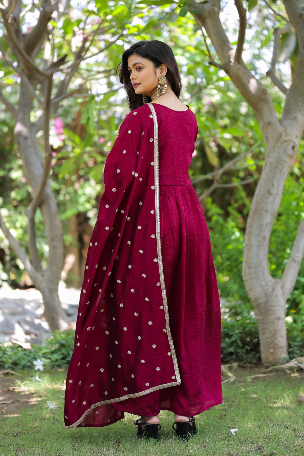Chanderi Maroon Kurta Set. The intricate details and rich maroon color make it perfect for any festive occasion. The fabric is lightweight and comfortable, making it easy to dance the night away. I highly recommend adding this kurta set to your wardrobe for your next festival celebration.