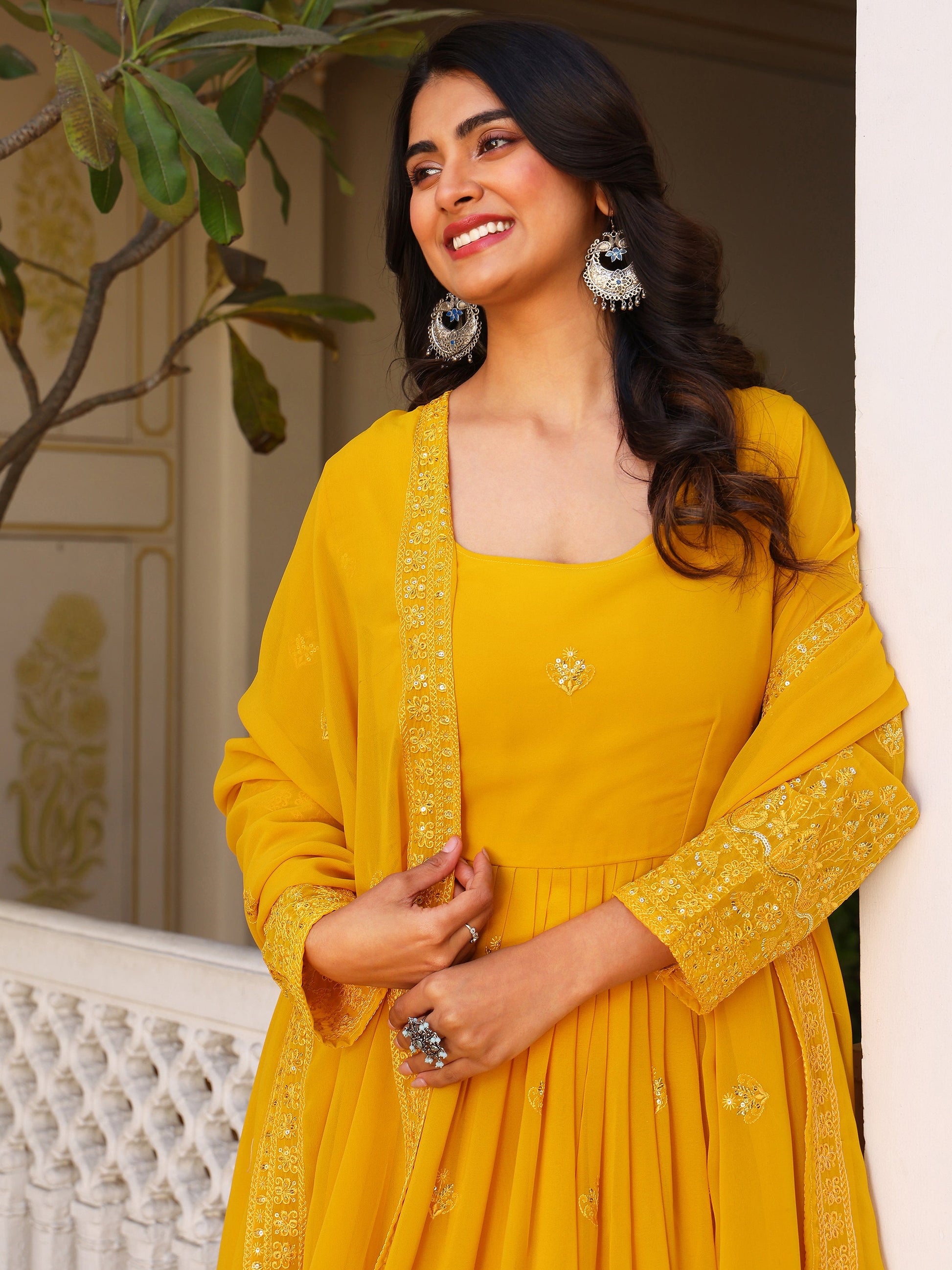 Product Name -Georgette Embroidered Yellow Anarkali Suit