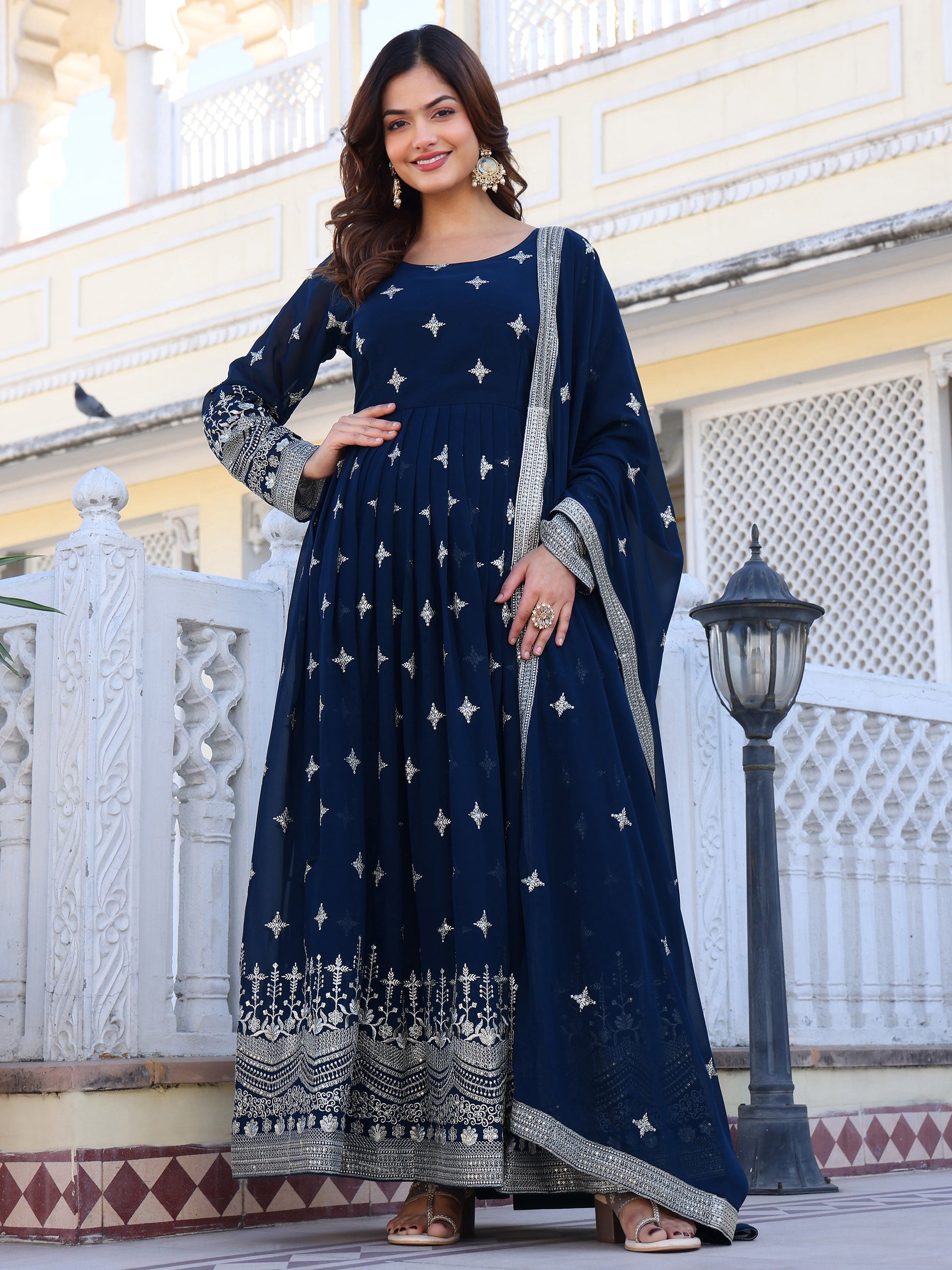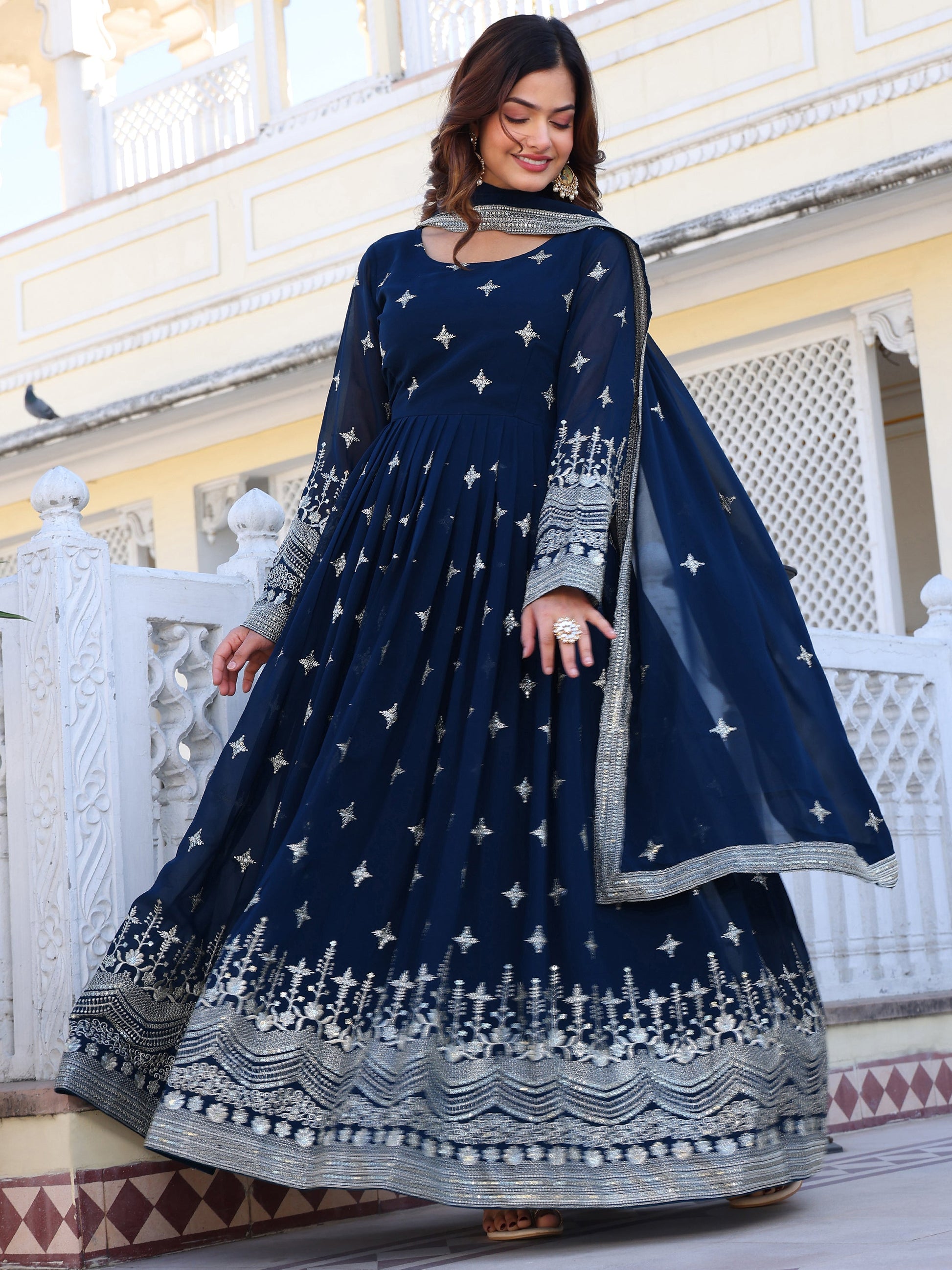 Product Name -Georgette Festival Wear Turquoise Anarkali Suit