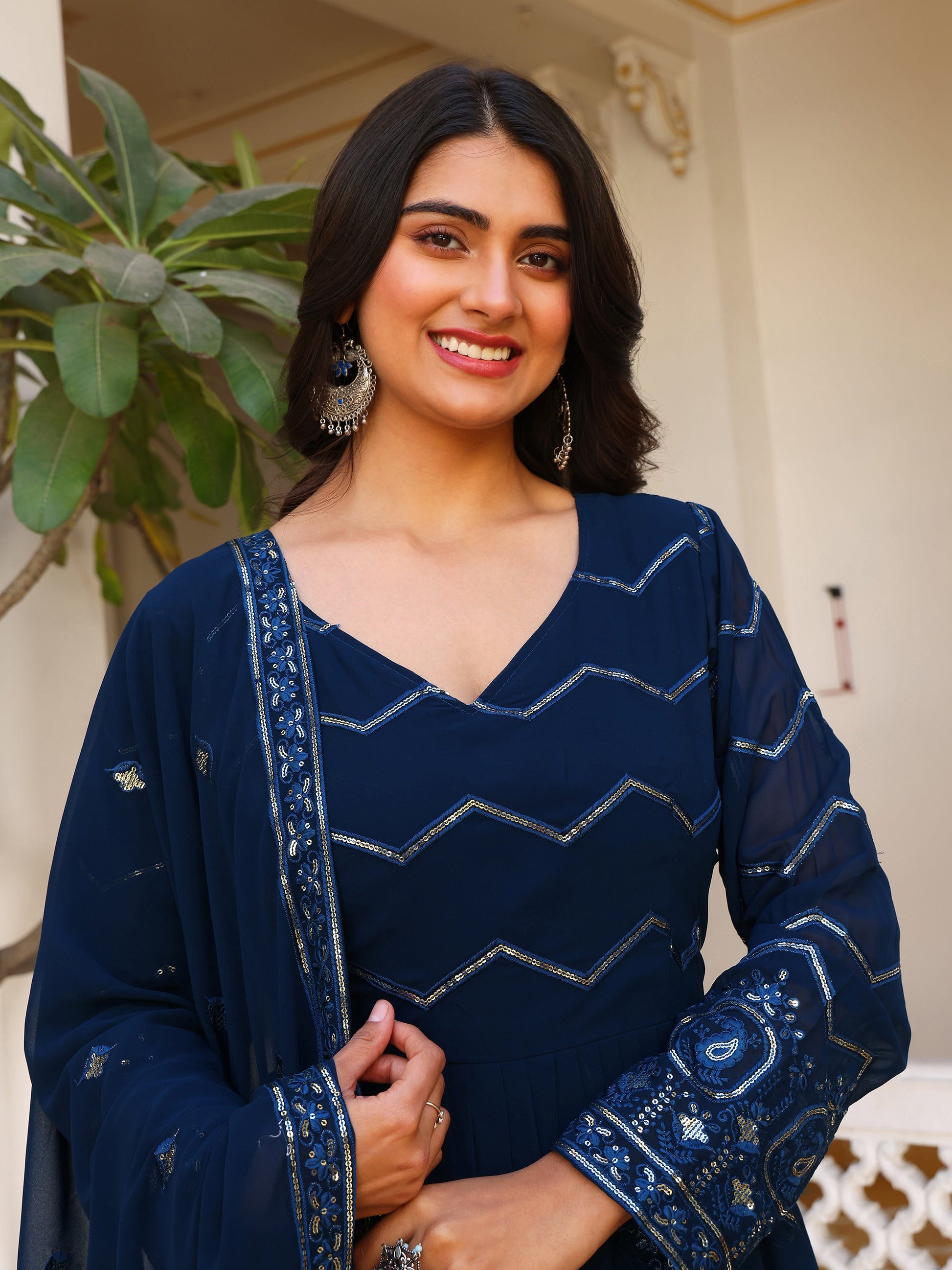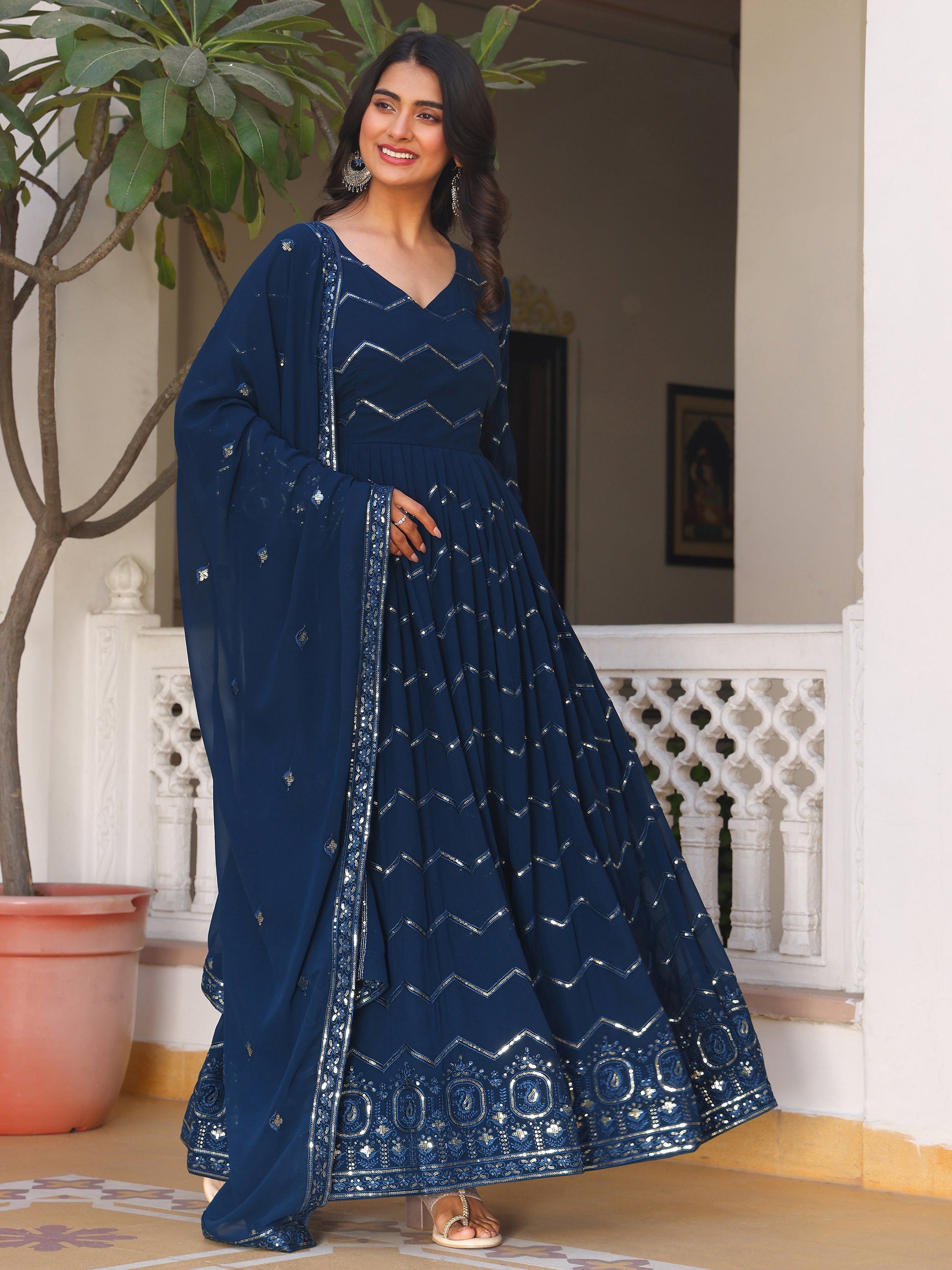 Product Name -Georgette Party Wear Turquoise Anarkali Suit