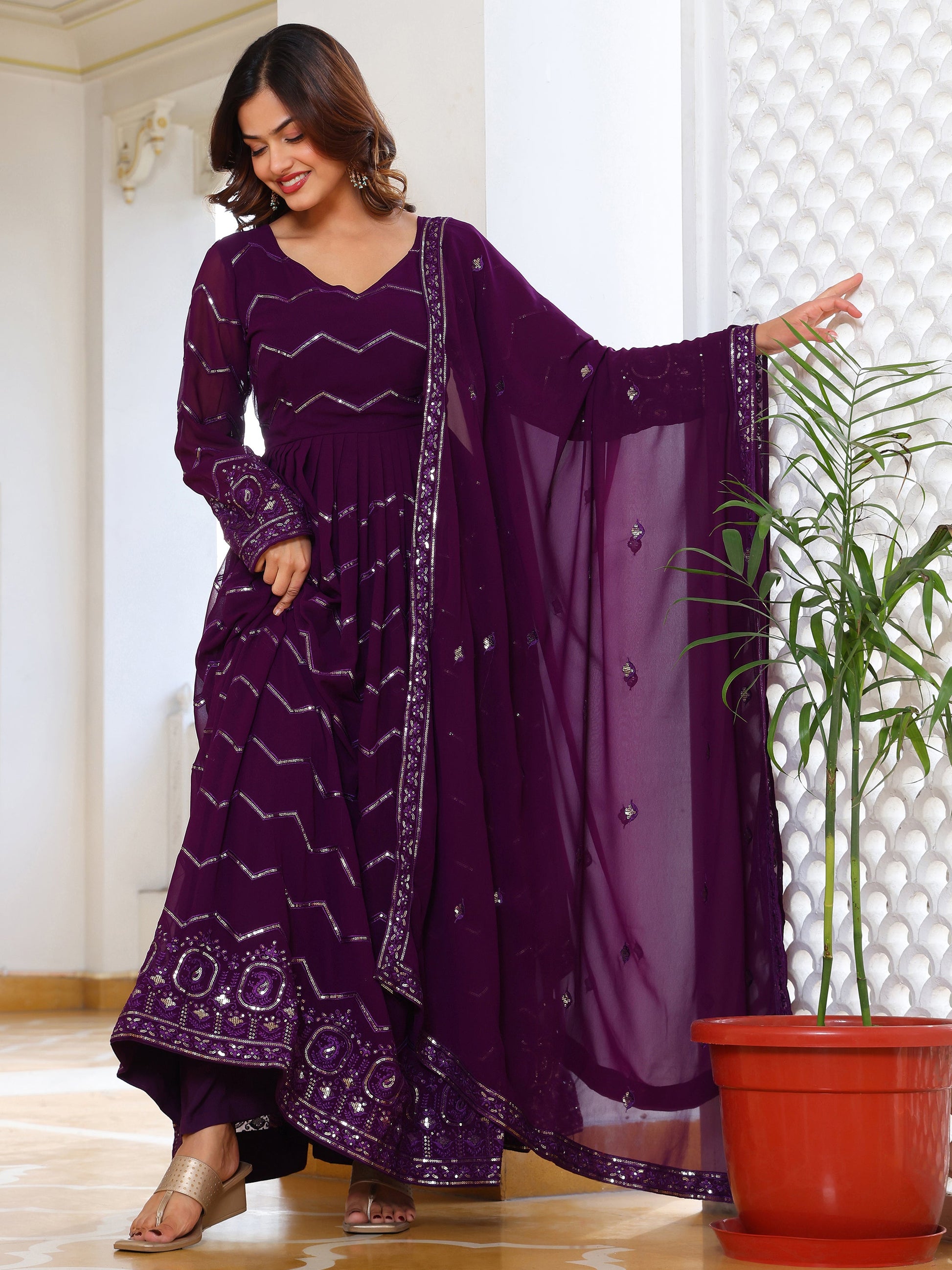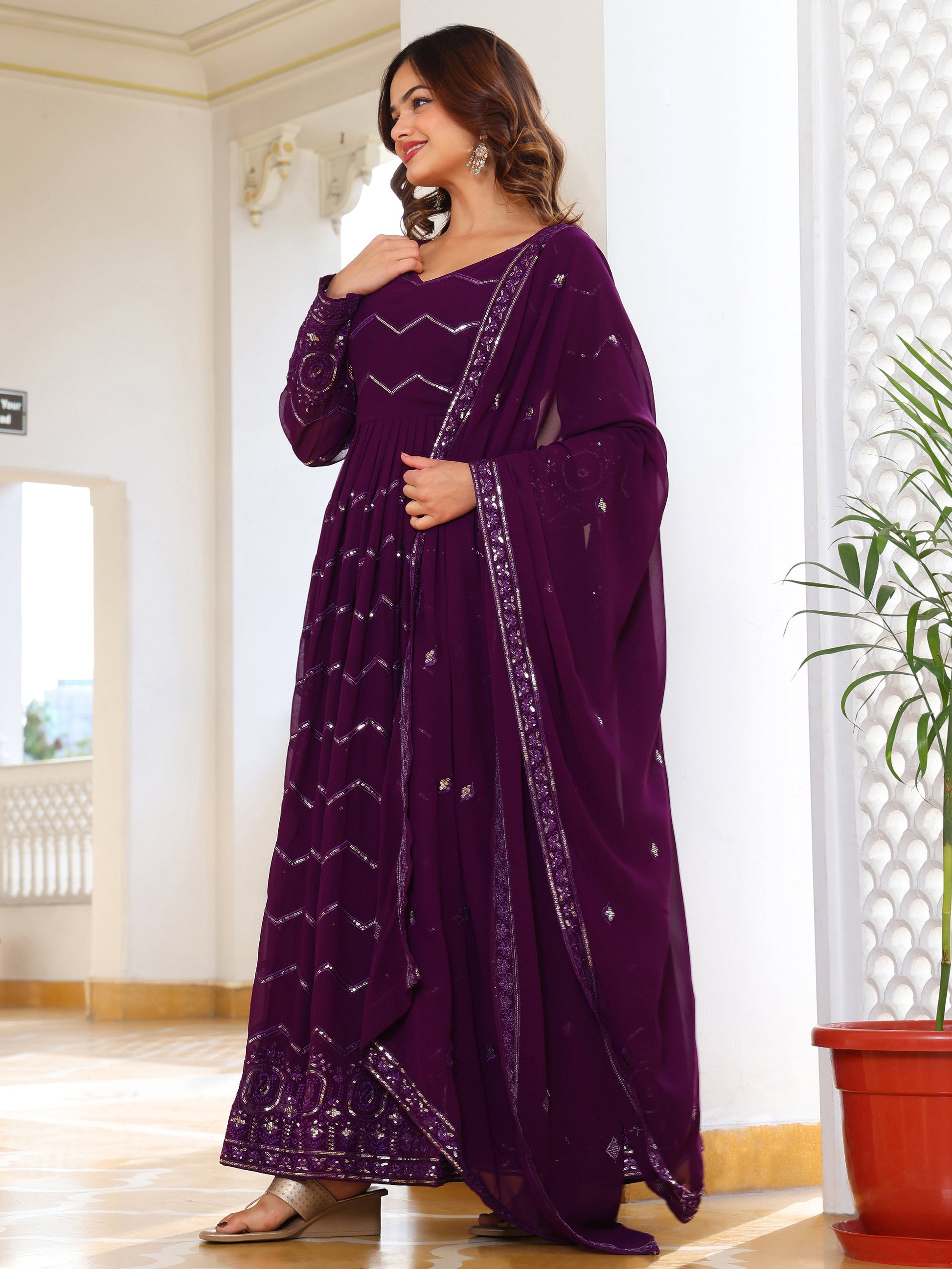 Product Name -Georgette Party Wear Wine Anarkali Suit