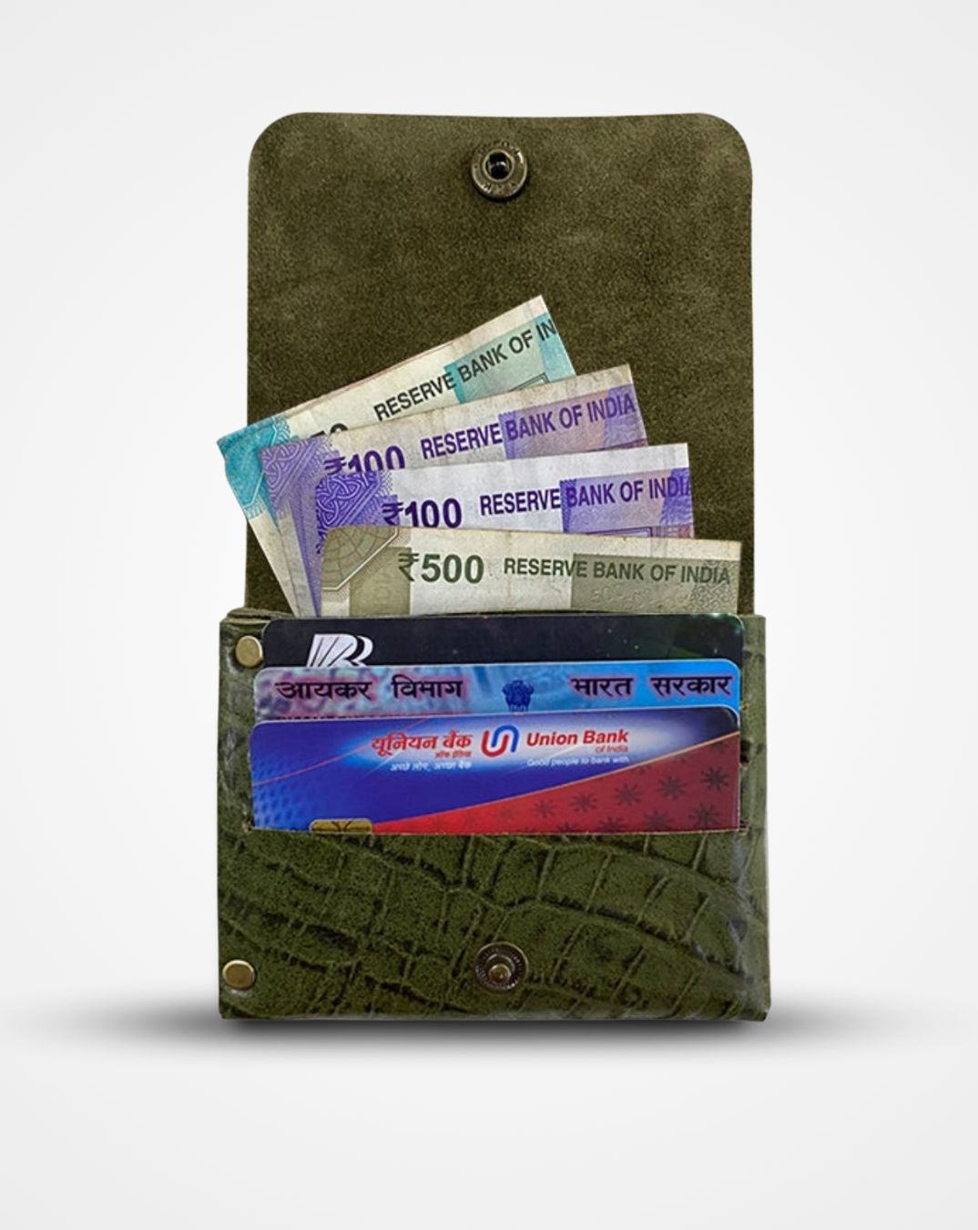 Get to know theGreen Croc Print Native Batua , a sleek and versatile leather wallet designed for your everyday adventures.