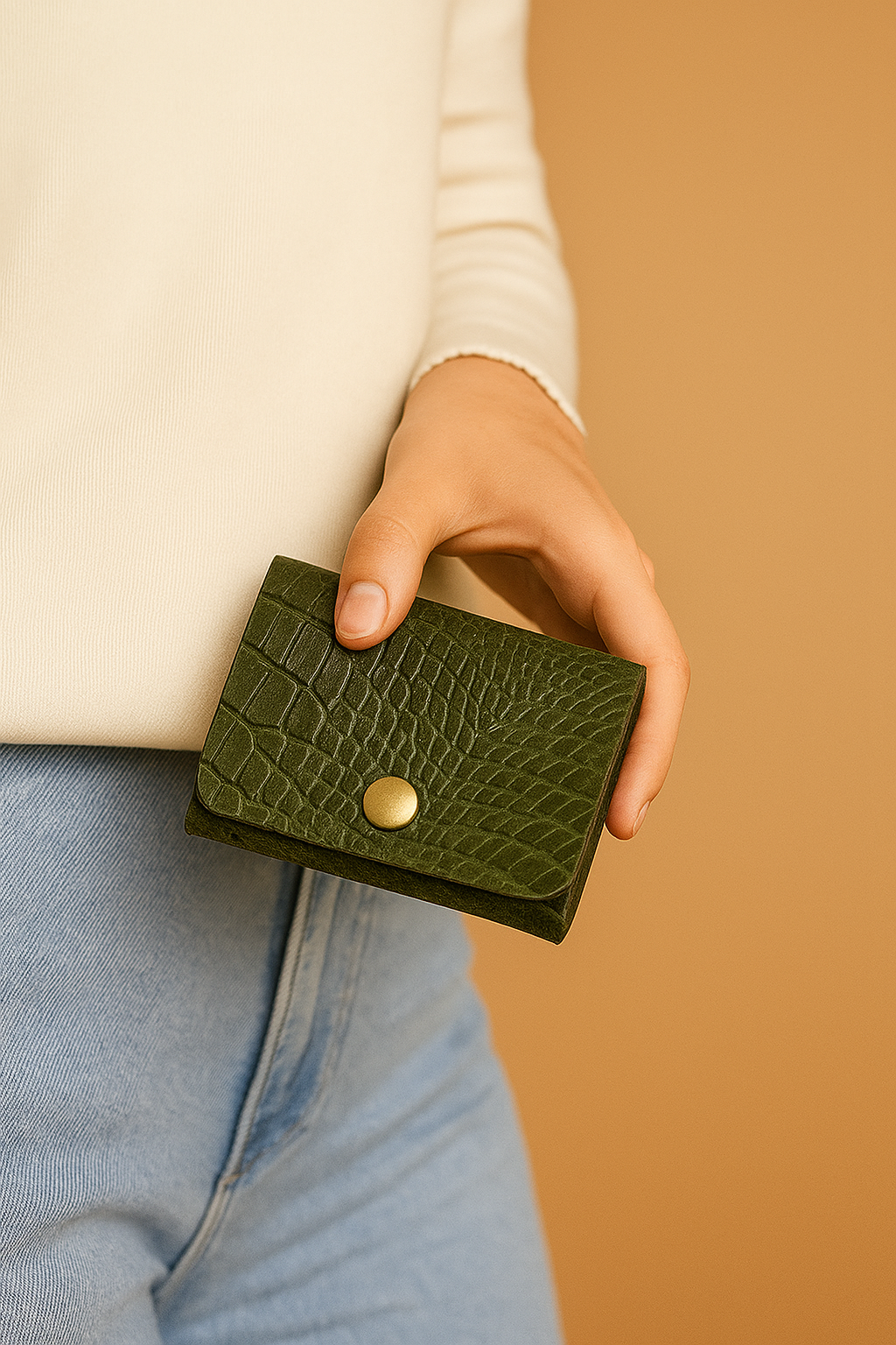 Introducing the Green Croc Print Native Batua - The Minimalistic Leather Wallet, an accessory that combines both style and functionality. Made from high-quality leather, this slim wallet is the perfect addition to your everyday wardrobe.