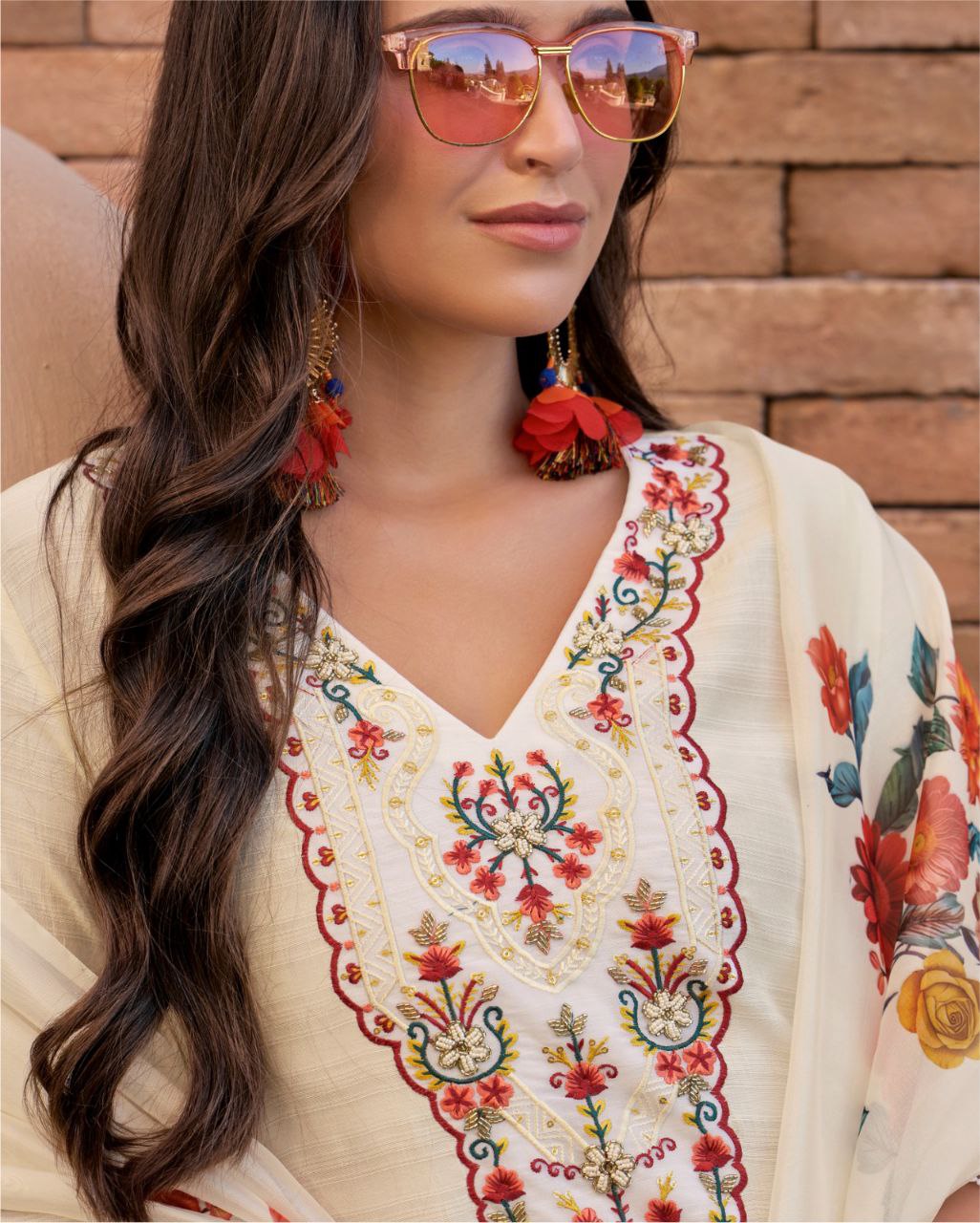 *This top made Chanderi Silk With Attractive Goergeous Embroidery And Chanderi Print Duptta*