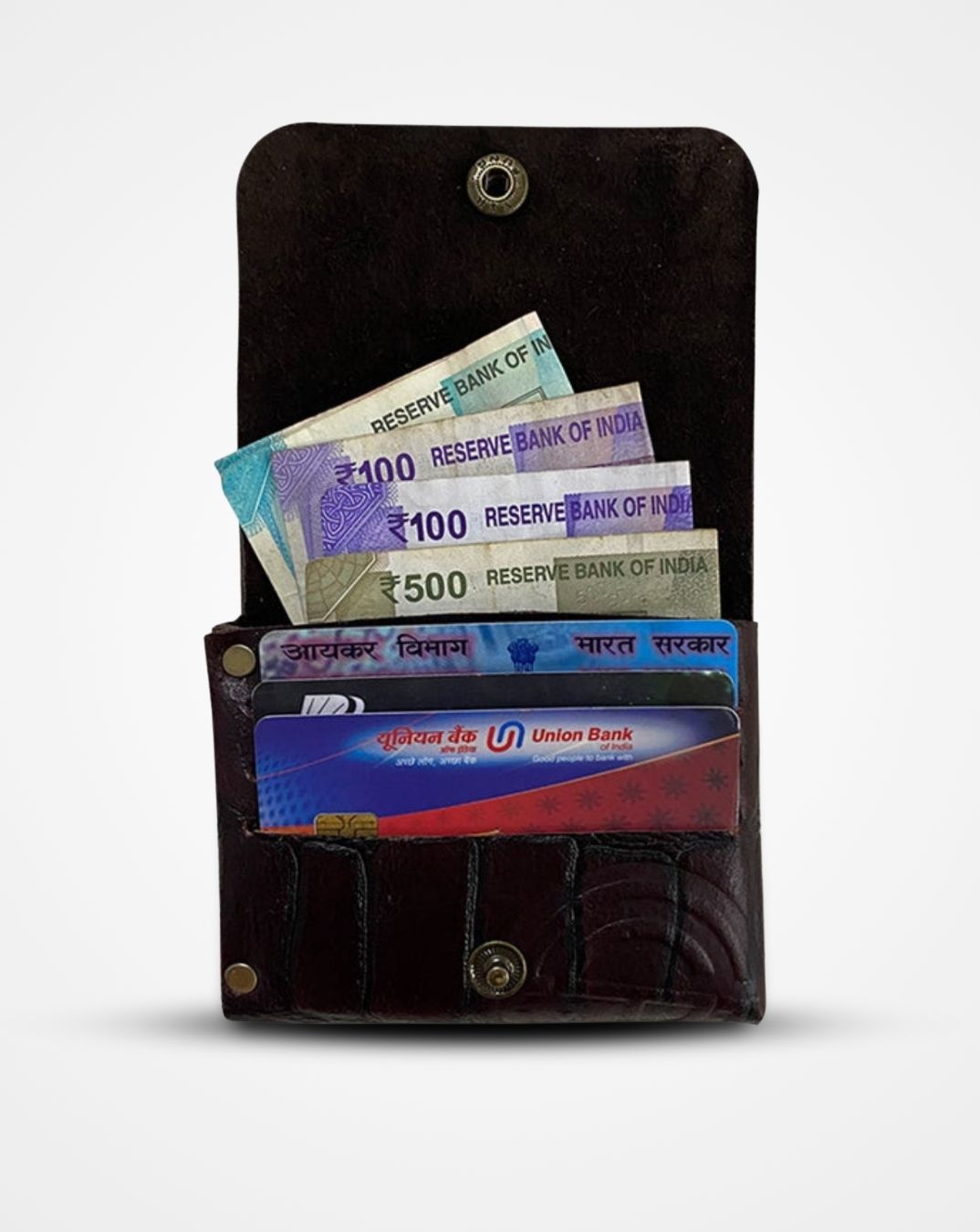 Organized Efficiency: Featuring 4 compartments, including 3 card slots and a dedicated cash slot, it's designed to hold up to 10 currency notes and 5 cards. The flap with a snap button closure and antique hardware add both security, charm and an easy to use feature.