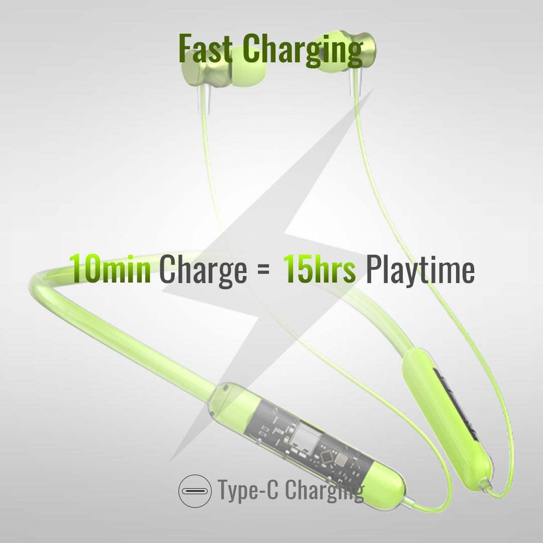 TecSox Verve 300 Neckband offers wireless Bluetooth connectivity 30-hour playtime, powerful audio and IPX water resistance for reliable and immersive quality. Specifications: Battery Life: 30 hours of continuous playback. Bluetooth 5.0: Seamless wireless connectivity with a stable range. IPX Water Resistance: Protected from sweat, splashes, and light rain. 14mm Dynamic Drivers: Rich bass and clear vocals for an immersive sound experience. Magnetized Angular Earbuds: Tangle-free storage and secure fit. USP: Extended Playtime: 30 hours of uninterrupted music. Powerful Sound: 14mm drivers for rich bass and clear sound. Lightweight Comfort: Feather-light design for all-day wear. Water-Resistant: Ideal for workouts and outdoor use.