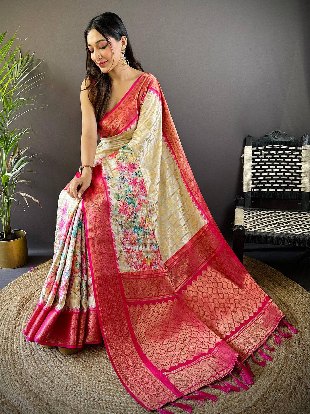 Pink Floral Bloom Kovai Rettapet Saree