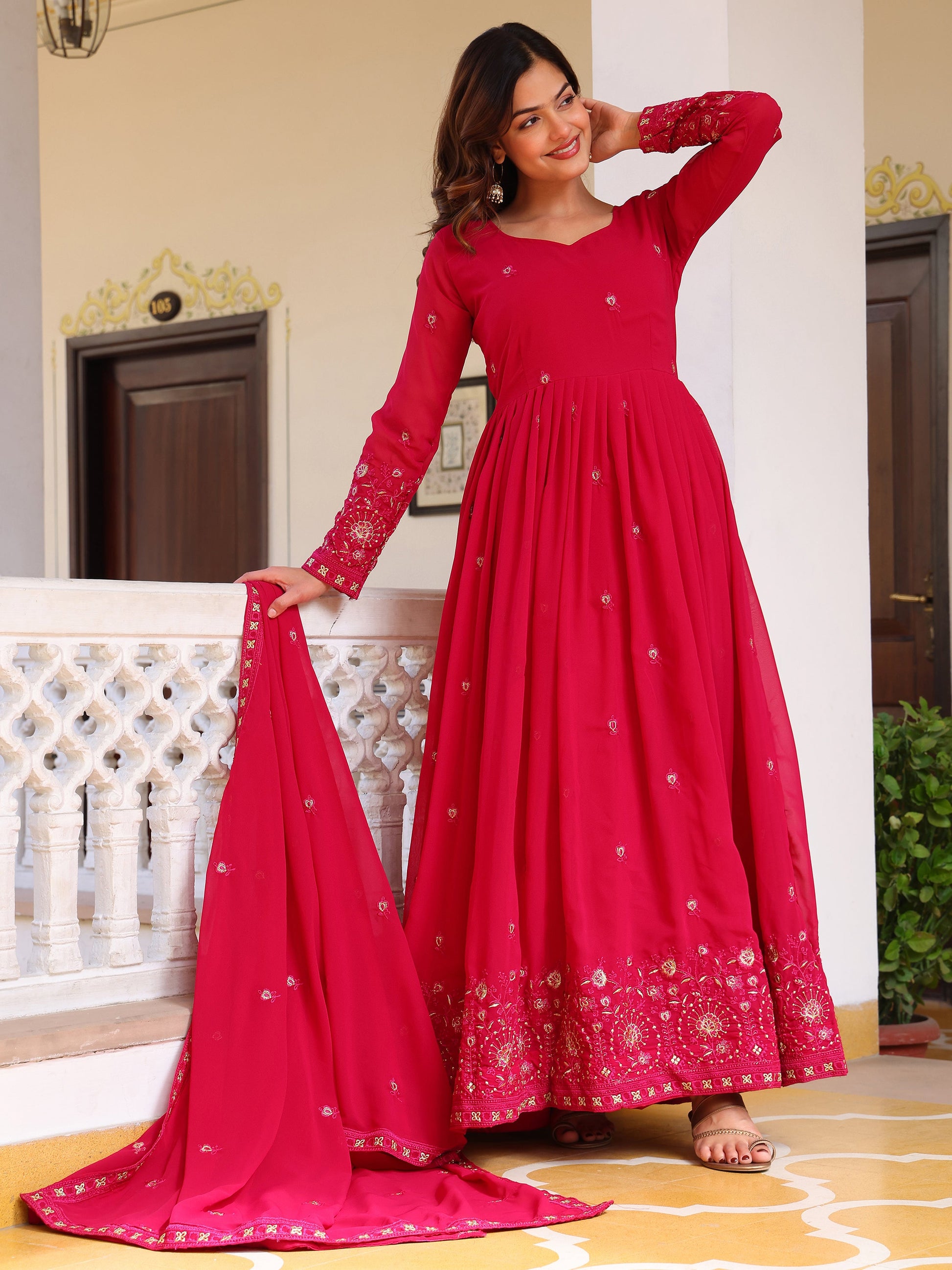 Product Name -Pink Georgette Party Wear Anarkali Suit