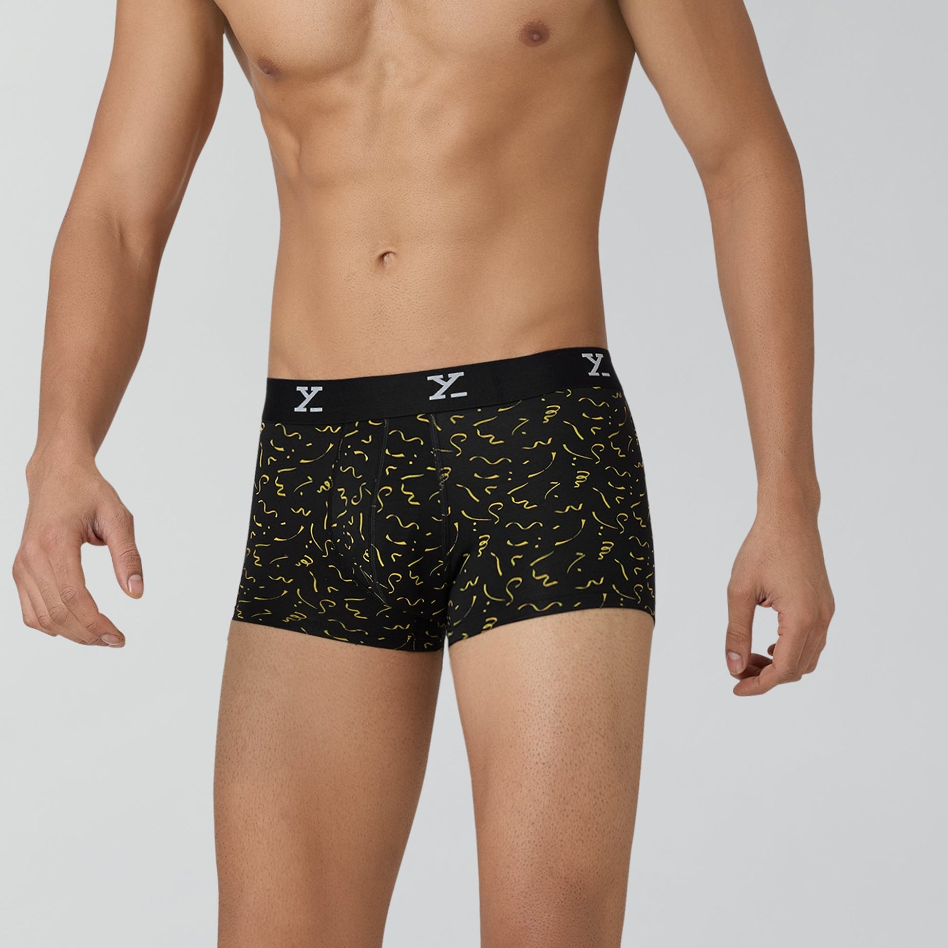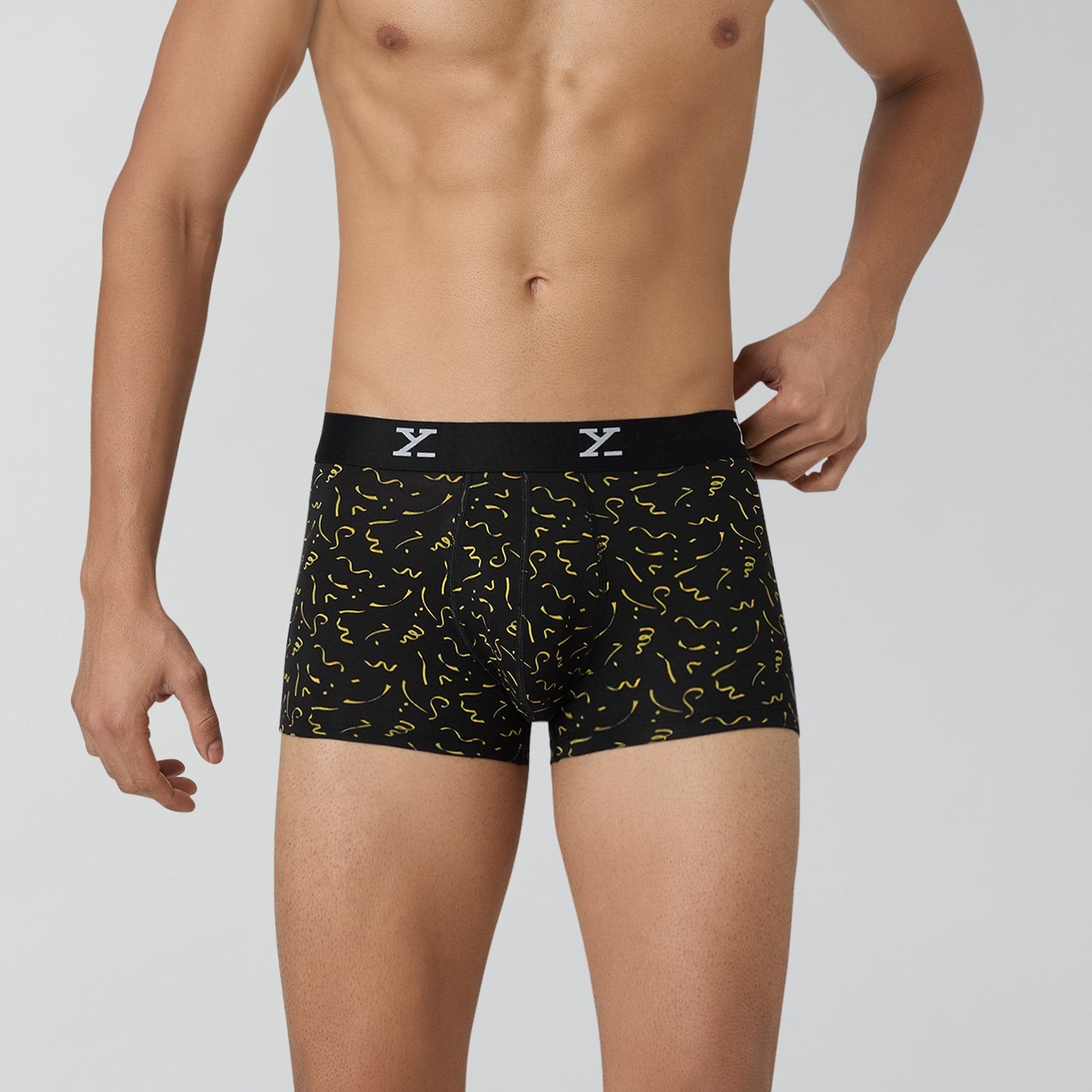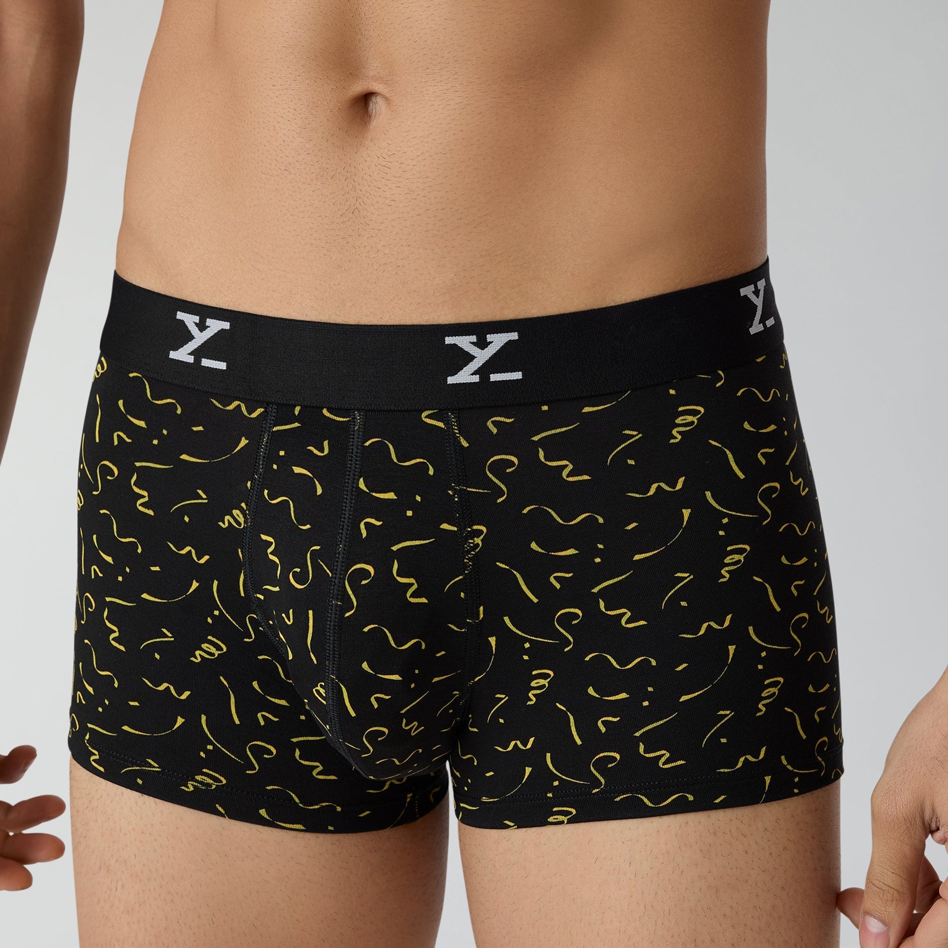 Say hello to our confetti black Shuffle trunks - your daily dose of swag.