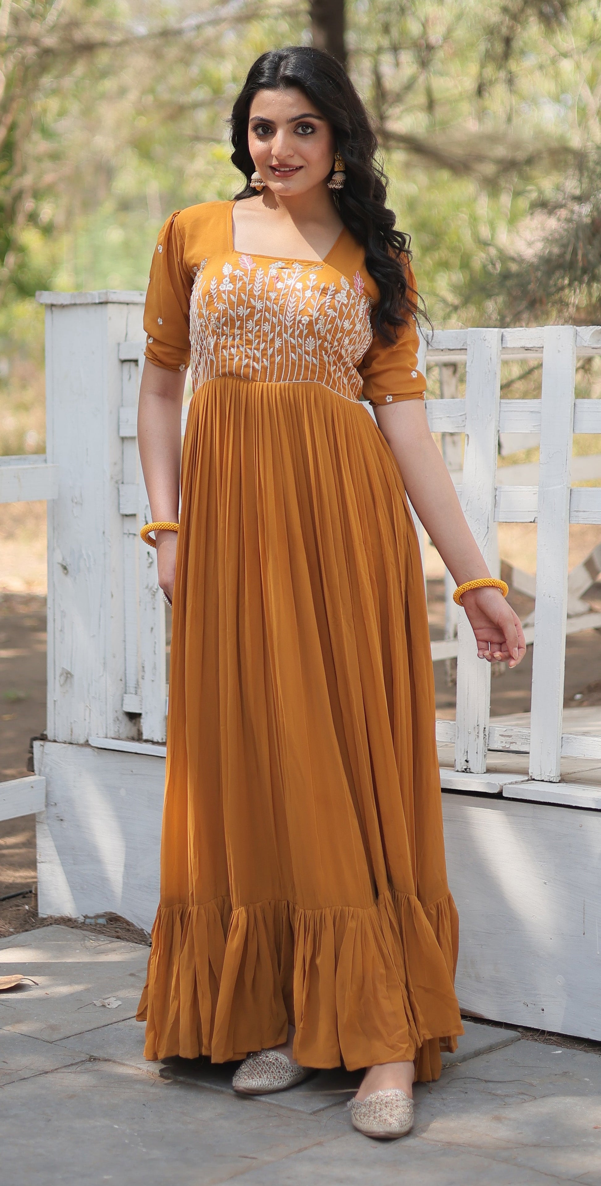 Product Name :-Sequence Wear Cotton Yellow Kurta Set