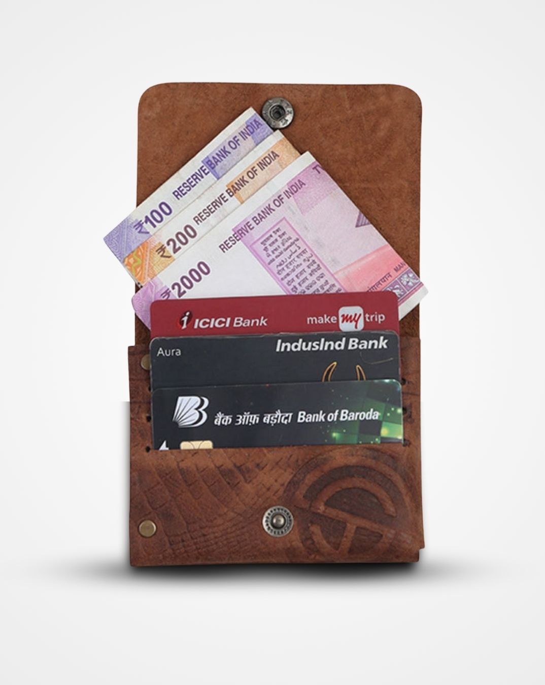 Organized Efficiency: Featuring 4 compartments, including 3 card slots and a dedicated cash slot, it's designed to hold up to 10 currency notes and 5 cards. The flap with a snap button closure and antique hardware add both security, charm and an easy to use feature.