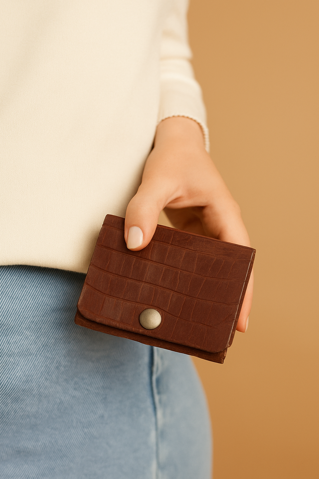 Introducing the Tan Croc Print Native Batua - The Minimalistic Leather Wallet, an accessory that combines both style and functionality. Made from high-quality leather, this slim wallet is the perfect addition to your everyday wardrobe.