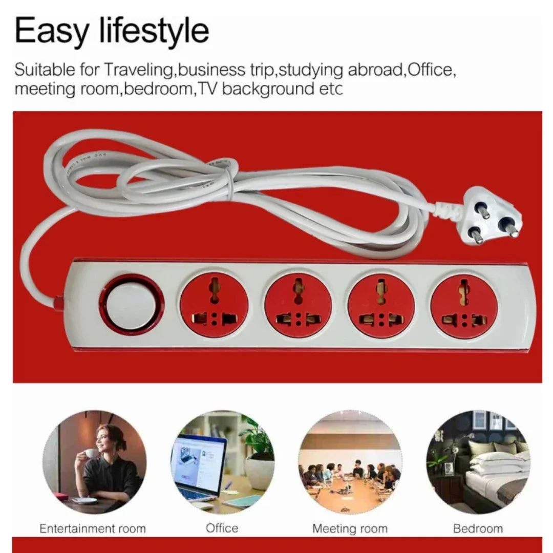 TecSox 4 Pin Extention Board | 2.7 m length with Fuse and International Sockets