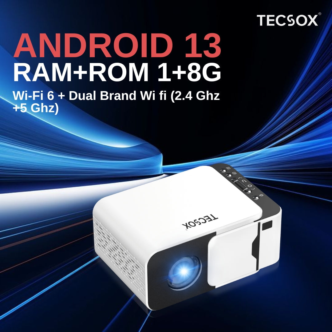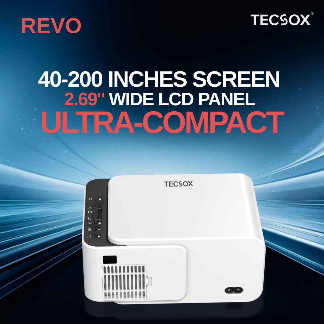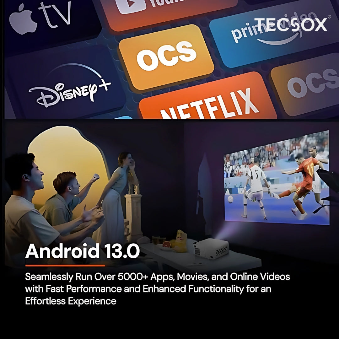 TecSox Revo Projector offers a versatile and immersive viewing experience and 4K support, auto horizontal keystone, and Android 13.0.