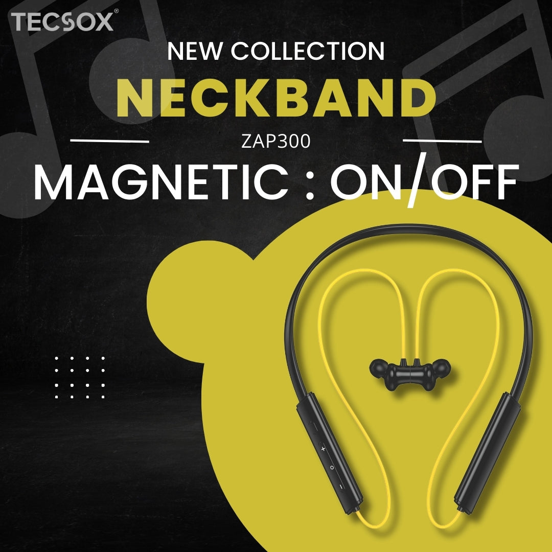 TecSox Zap300 Neckband offers a reliable and durable audio experience with Bluetooth connectivity, 40-hour playtime, high bass, and IPX water resistance. Specifications: 40-Hour Battery Life: Non-stop playback for music, podcasts, and calls. High Bass: Deep, powerful bass for an immersive experience. IPX5 Water Resistance: Sweatproof and water-resistant for workouts and outdoor use. Comfortable Fit: Lightweight, flexible neckband for all-day comfort. Quick Charging: Fast recharge for minimal downtime. USP: Extended Playtime: 40 hours of continuous listening. Powerful Bass: Rich, deep audio performance. Waterproof: IPX5 rating for durability during intense activity. Wireless Convenience: Bluetooth for seamless connection. All-Day Comfort: Flexible neckband for long, comfortable wear. Sleek Design: Stylish, minimalist look for any occasion.